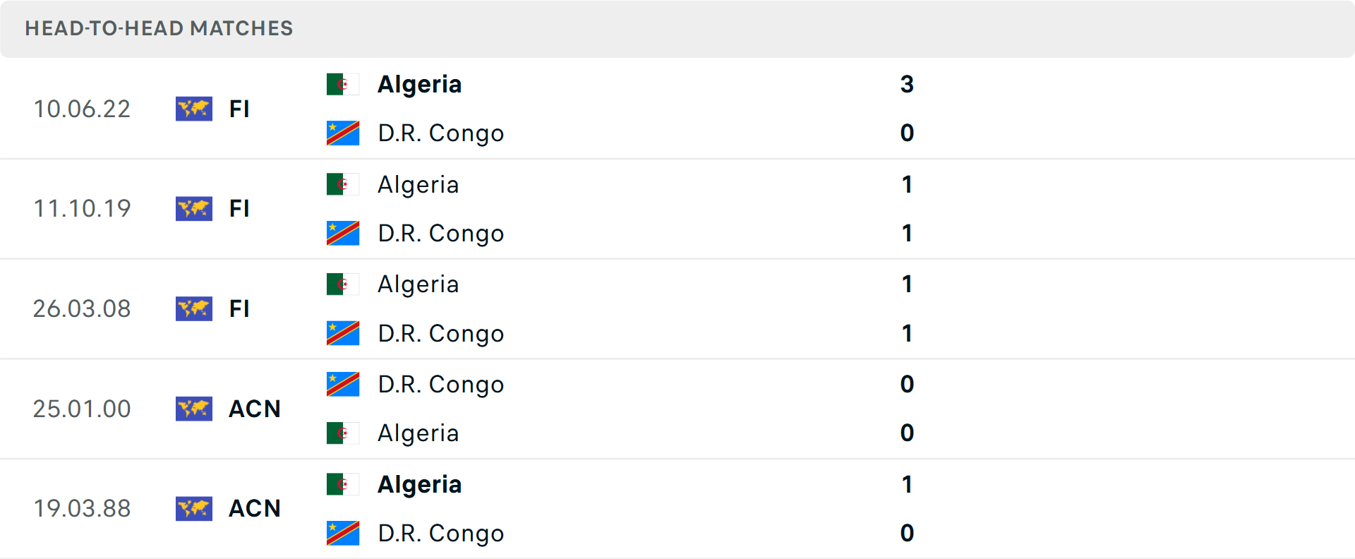 Tỷ lệ trận đấu: Algeria toàn thắng 3 trận vừa qua theo tỷ số châu Á. Phía bên kia, Congo trải qua 6 trận thắng liên tiếp.