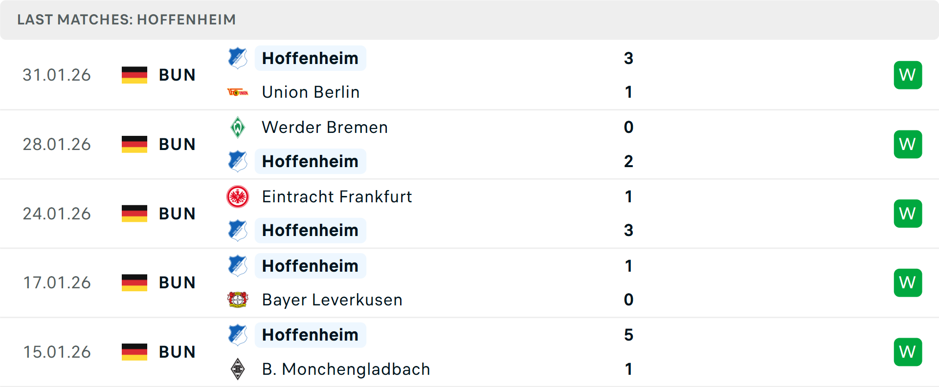 Phía bên kia, Hoffenheim đang là đội bóng "ngựa ô" đầy giải trí với chuỗi 7 trận bất bại (thắng 6). Đoàn quân của Christian Ilzer sở hữu hàng công cực kỳ bùng nổ khi ghi ít nhất 3 bàn ở 9/14 trận vừa qua.
