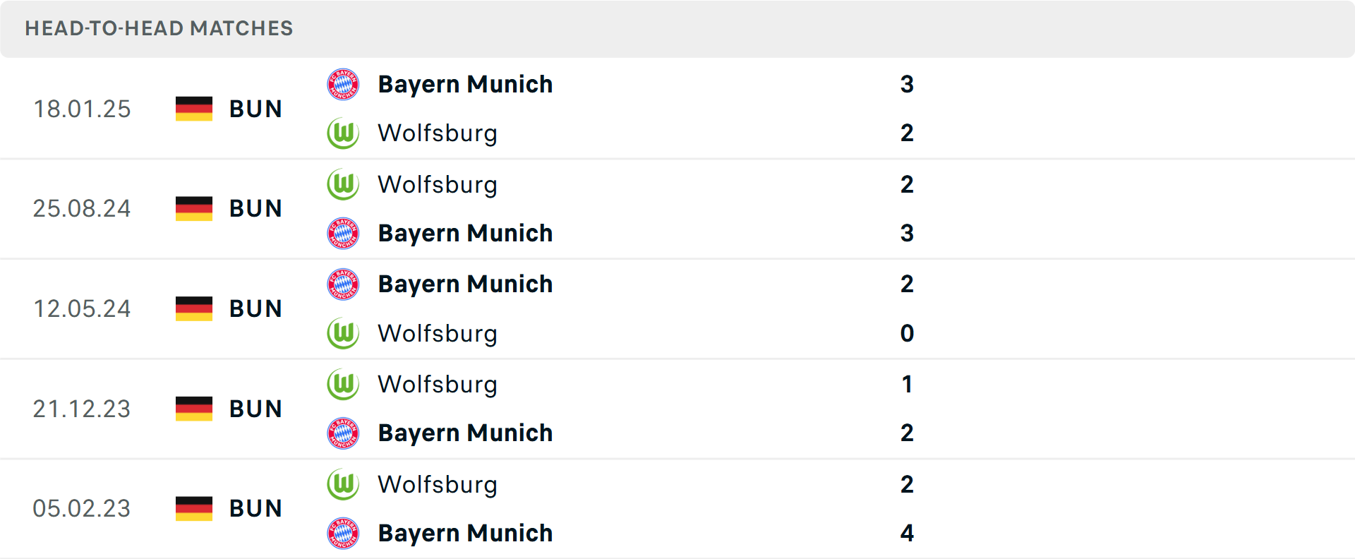 Lịch sử hoàn toàn ủng hộ Bayern với 45 chiến thắng sau 56 lần đối đầu. Trong bối cảnh cả hai đều chơi tấn công cởi mở, một bữa tiệc bàn thắng là kịch bản khó tránh khỏi. Bayern Munich nhiều khả năng sẽ tiếp tục thống trị, nhưng Wolfsburg cũng sẽ khiến đội chủ nhà phải toát mồ hôi.