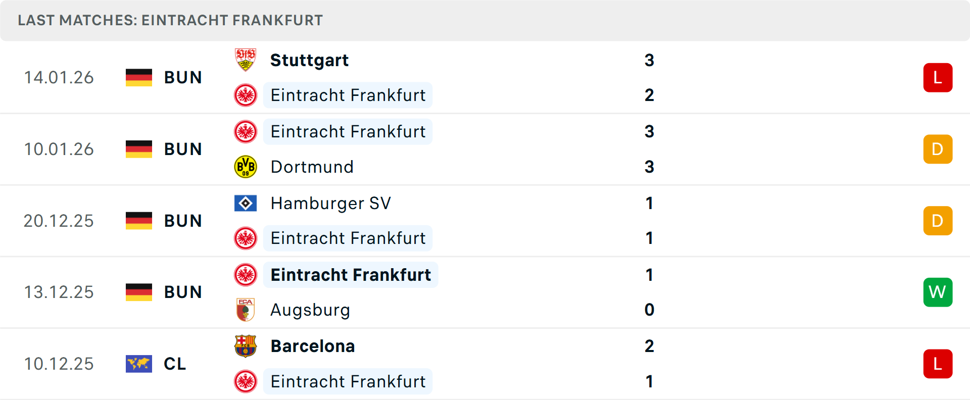 Phía bên kia, Frankfurt cũng vừa để thua Stuttgart 2-3 và đang là đội có hàng thủ tệ thứ hai giải đấu (36 bàn thua). Tuy nhiên, "Đại bàng" lại có dấu hiệu khởi sắc ở khâu ghi bàn với 5 pha lập công trong 2 trận gần đây. Trong bối cảnh cả hai đều khát điểm để thoát khỏi mạch u ám, sự lỏng lẻo của hệ thống phòng ngự sẽ mở ra cơ hội cho các chân sút. Frankfurt với bản lĩnh nhỉnh hơn được dự đoán sẽ giành chiến thắng sát nút.