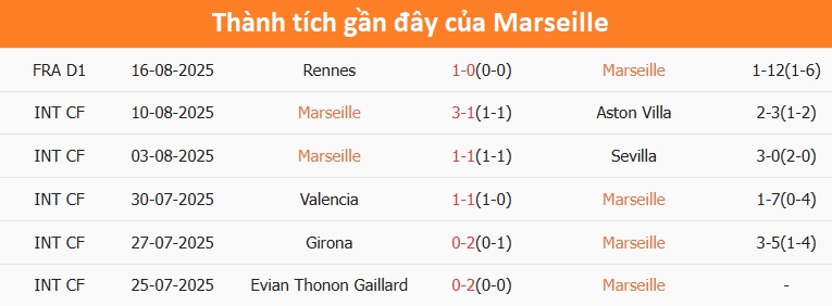 Tỷ lệ trận đấu: Marseille thua 3/4 trận gần đây theo tỷ số châu Á. Về phần mình, Paris FC cũng thua 3/4 trận mới nhất.