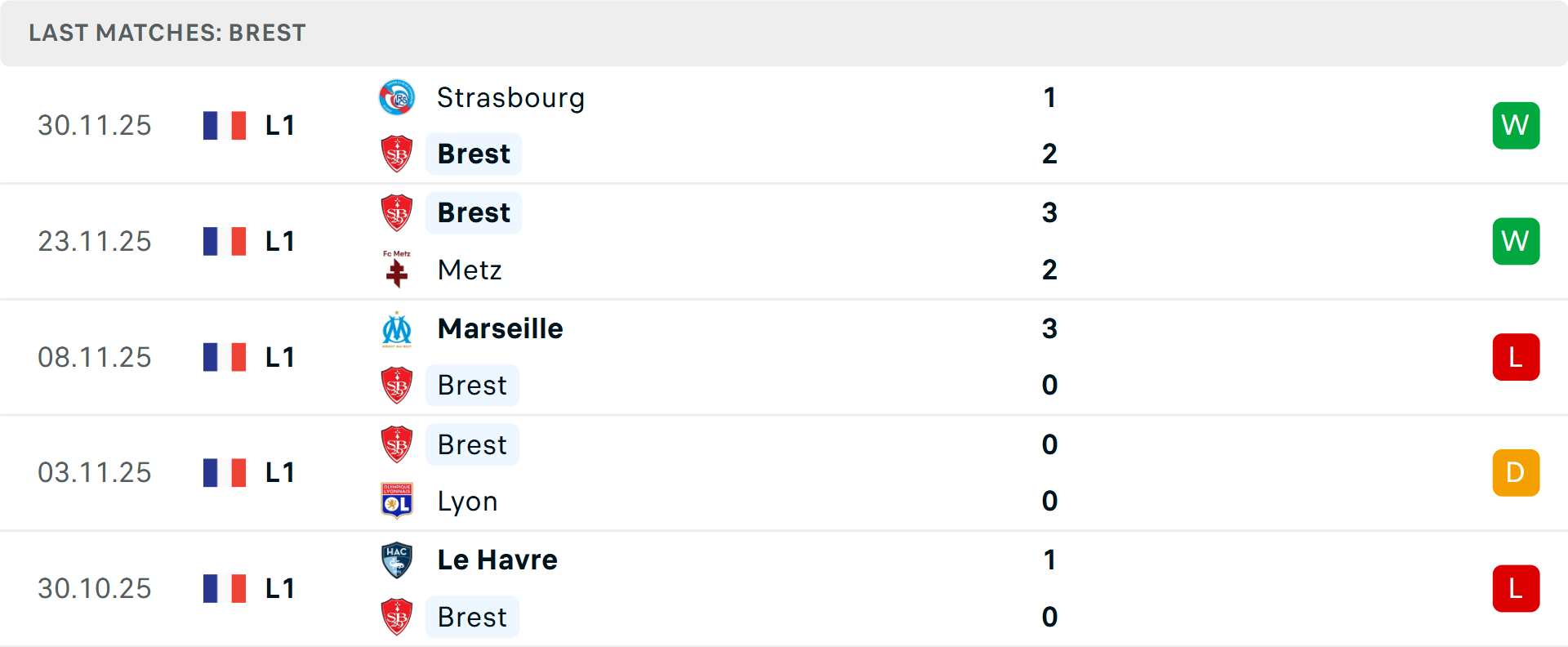 Brest đã thoát khỏi nhóm nguy hiểm nhờ 2 chiến thắng liên tiếp gần đây, ghi tới 5 bàn. Họ đang hướng tới chuỗi 3 trận thắng liên tiếp tại Ligue 1 lần đầu tiên kể từ mùa trước và có điểm ở 4/5 trận gần nhất trên sân nhà Stade Francis-Le Blé.