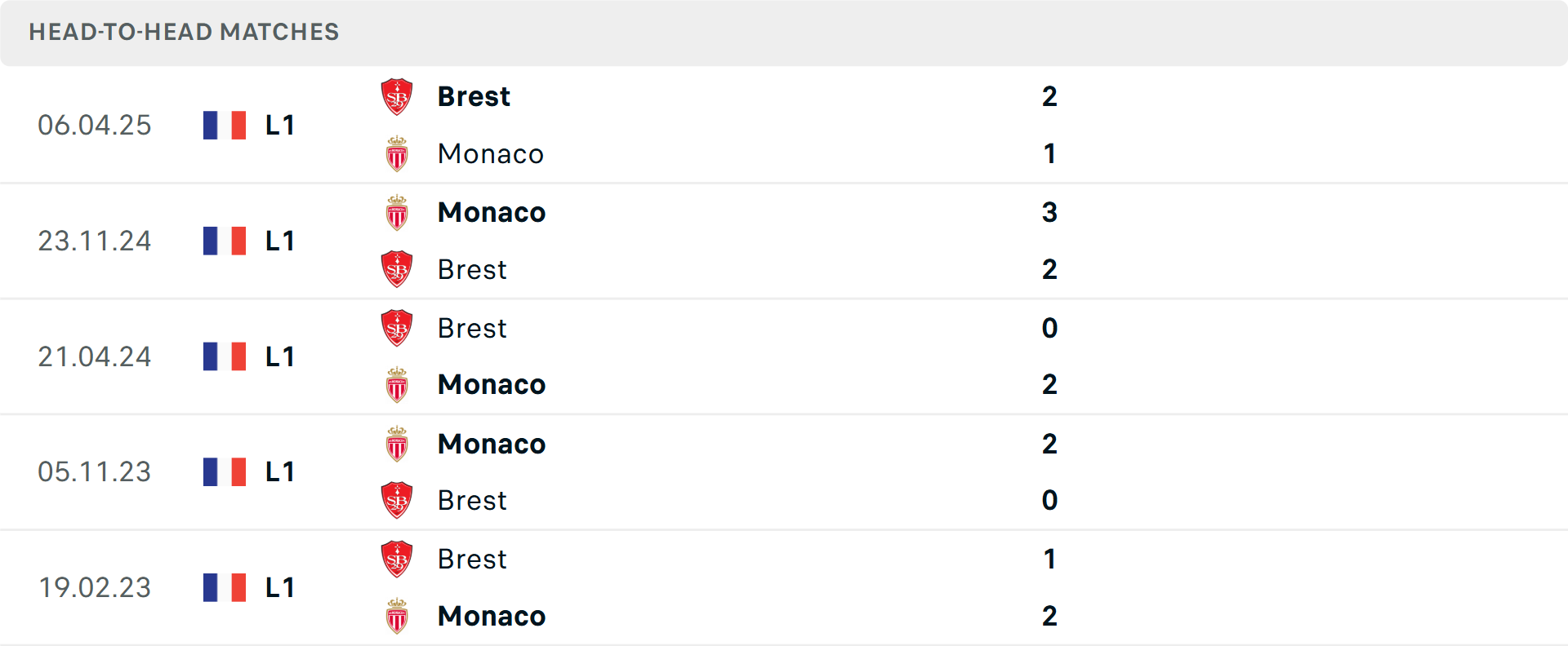 Phía bên kia, Monaco vừa chấm dứt chuỗi trận đáng thất vọng bằng màn trình diễn hay nhất mùa giải khi hạ gục PSG, nhưng họ tỏ ra kém tin cậy trên sân khách, để thủng lưới 11 bàn trong 4 trận gần nhất và chỉ thắng 1/4 trận sân khách vừa qua. Mặc dù Monaco có thành tích đối đầu vượt trội trước Brest (thắng 6/7 lần gần nhất), sự hưng phấn và khả năng tấn công của Brest trên sân nhà có thể tạo nên bất ngờ.