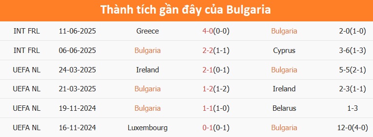 Tỷ lệ trận đấu: Bulgaria trải qua 5 trận thua liên tiếp theo tỷ số châu Á, xa hơn là 8/10 trận. Phía bên kia, Tây Ban Nha thắng 3, hoà 2 và thua 2 trong 7 trận gần đây.