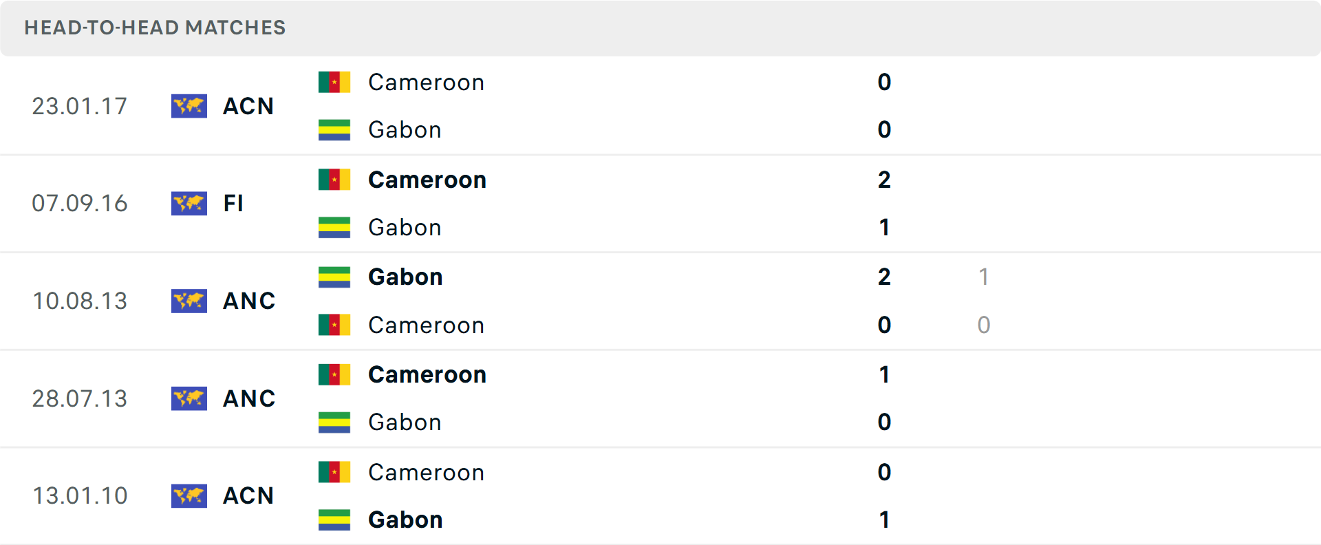 Tỷ lệ trận đấu: Cameroon trải qua 4 trận thua liên tiếp theo tỷ số châu Á, xa hơn là 6/8 trận. Ngược lại, Gabon toàn thắng 7 trận gần đây.