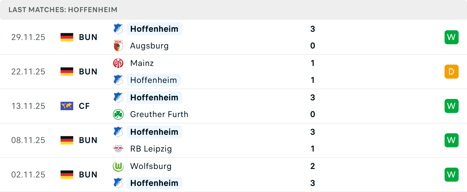 Trong khi đó, Hoffenheim (kém Dortmund 2 điểm) đang là hiện tượng của Bundesliga. Họ sở hữu hàng công mạnh mẽ và đang có chuỗi 6 trận bất bại tại giải VĐQG, trong đó có 5 chiến thắng. Trận thắng 3-0 trước Augsburg cuối tuần trước là minh chứng cho phong độ ngoạn mục của đoàn quân HLV Christian Ilzer.