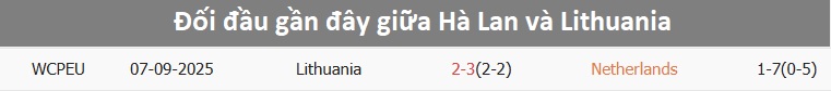 Tỷ lệ trận đấu: Hà Lan thắng 5/8 trận gần đây theo tỷ số châu Á. Đức cũng thua 8/10 trận gần đây. Về phần mình, Lithuania chỉ thắng 1/4 trận vòng loại.