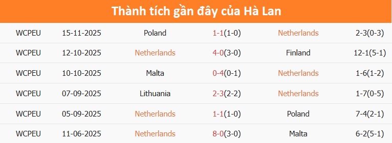 Hà Lan chỉ còn cách một bước nữa là giành vé trực tiếp dự World Cup 2026. Nói cách khác, chỉ cần đánh bại Lithuania, họ sẽ hoàn thành nhiệm vụ. Mặc dù chỉ cần hoà hoặc thậm chí thua, tất nhiên đội quân da cam không nhập cuộc với thái độ đó. Sau trận hoà Ba Lan, Hà Lan cần tìm lại sức mạnh đích thực trên sân nhà trước một đối thủ không tương xứng.