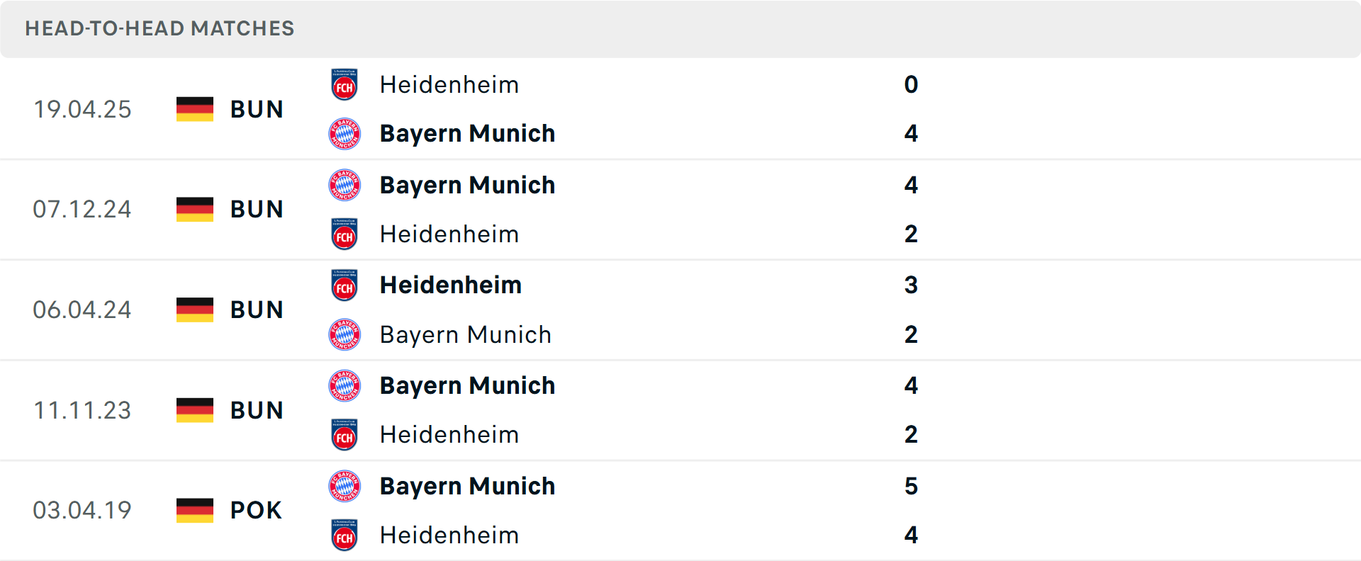 Tổng bàn thắng cả trận: Cả 4 cuộc đối đầu trước đó giữa hai đội đều vượt mốc tổng bàn thắng, tương tự là 5/6 trận gần đây của cả Heidenheim và 7/8 trận của Bayern Munich.
