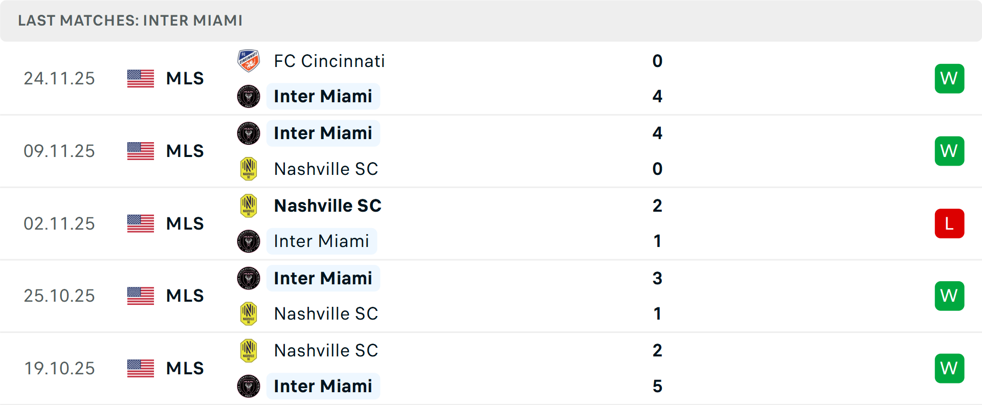 Tổng bàn thắng cả trận: Hai cuộc đối đầu mới nhất giữa hai đội đều có 4 bàn. 8/10 trận gần đây của Inter Miami vượt mốc tổng bàn thắng.