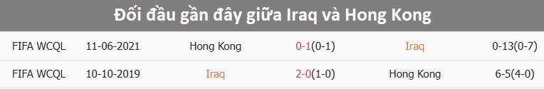 Tỷ lệ trận đấu: Iraq vừa thắng trận mới nhất theo tỷ số châu Á. Về phần mình, Hong Kong thua 2/3 trận gần đây.