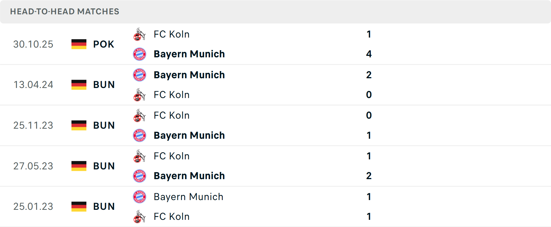 Đội chủ nhà Koln đang chìm sâu trong khủng hoảng với chuỗi 7 trận liên tiếp không biết mùi chiến thắng. Hàng phòng ngự của "Những chú dê" là điểm yếu chí tử khi đã để thủng lưới trong 11 trận gần nhất. Với thành tích chỉ thắng 2 sau 8 trận tại RheinEnergie mùa này, đoàn quân của Lukas Kwasniok khó lòng đứng vững trước sức mạnh hủy diệt từ Bavaria.