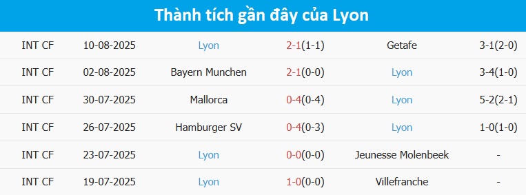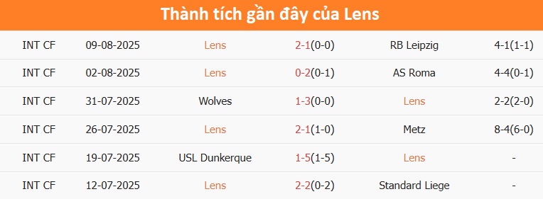 Tỷ lệ trận đấu: Lens thắng 2, hoà 1 và thua 1 trong 4 trận gần đây theo tỷ số châu Á. Về phần mình, Lyon thắng 3/4 trận vừa qua.