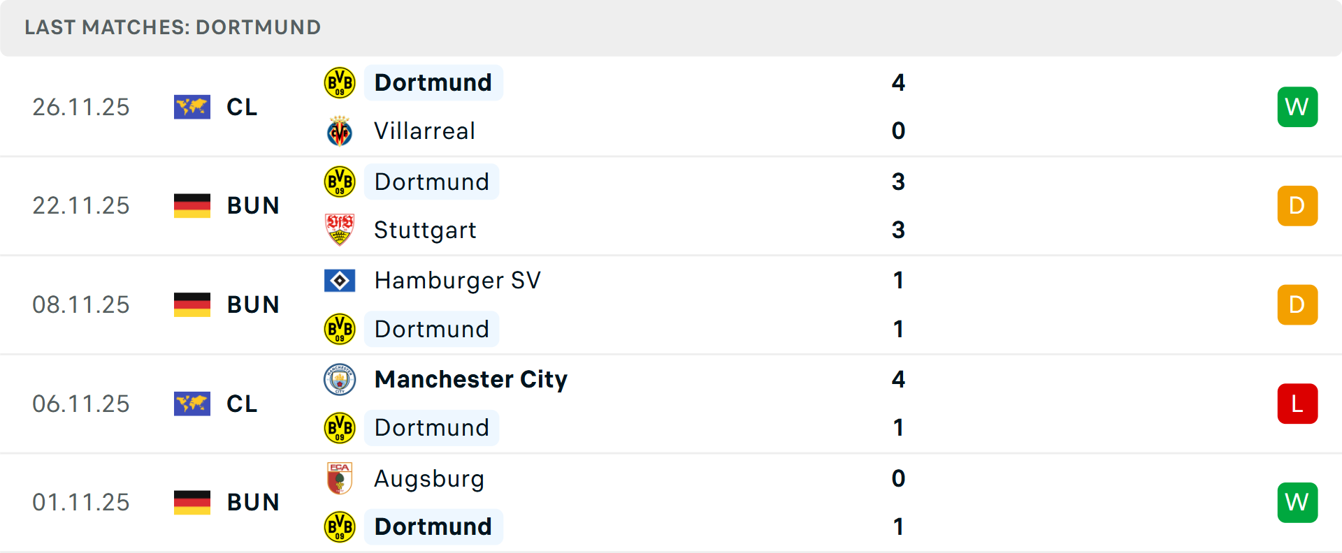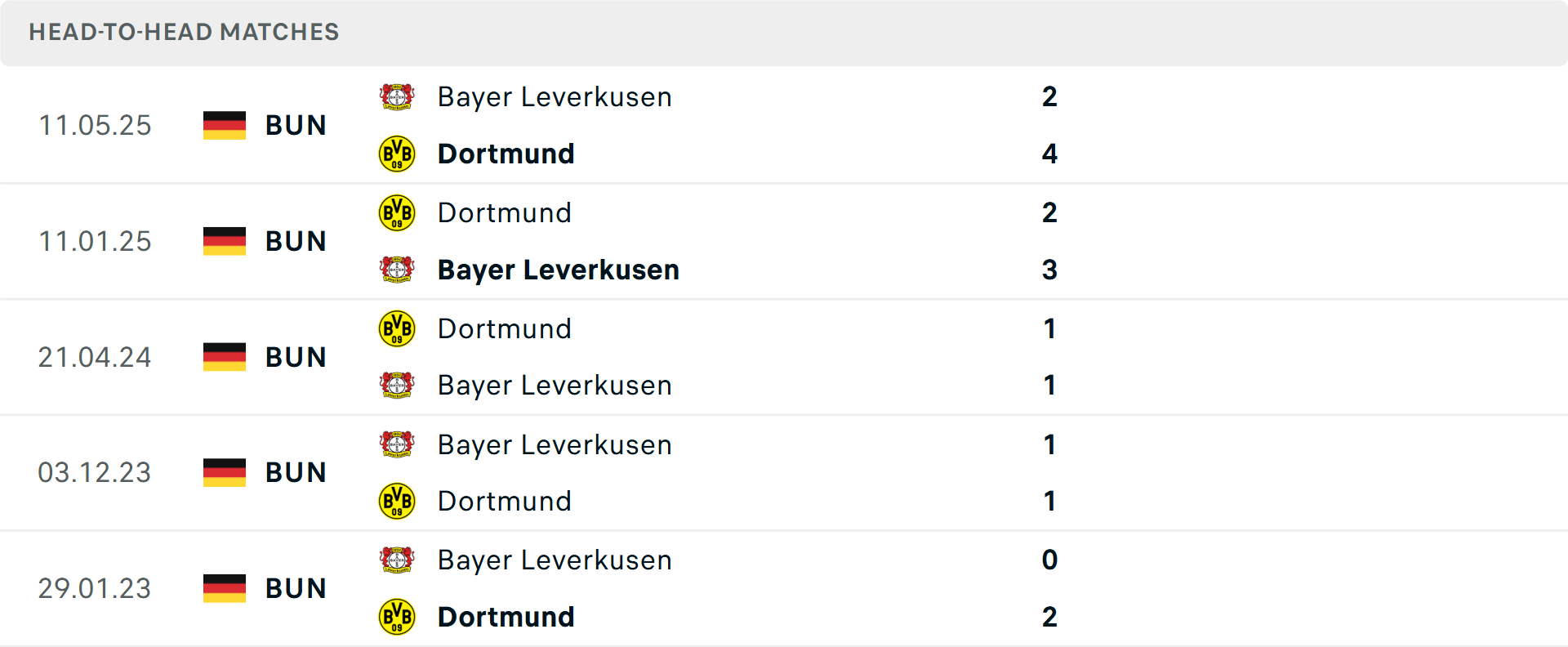 Trong khi đó, Dortmund hiện xếp thứ 4, chỉ kém Leverkusen một điểm (22 so với 23). Tuy nhiên, phong độ gần đây của Dortmund không ổn định, với 2 chiến thắng, 2 hòa và 1 thua trong 5 trận vừa qua. Đáng chú ý, hàng thủ của Dortmund vẫn là một mối lo khi họ thủng lưới 8 lần trong 5 trận gần đây, bao gồm trận hòa kịch tính 3-3 trước Stuttgart.