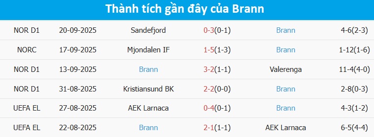 Tổng bàn thắng cả trận: Cả 3 trận vừa qua của Lille đều vượt mốc tổng bàn thắng. Phía bên kia, Brann trải qua 7 trận liên tiếp có từ 3 bàn trở lên.