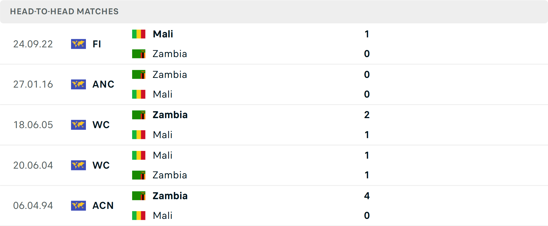 Tỷ lệ trận đấu: Mali thắng 1 và hoà 1 trong 2 trận vừa qua theo tỷ số châu Á. Phía bên kia, Zambia thua 8/9 trận gần đây.