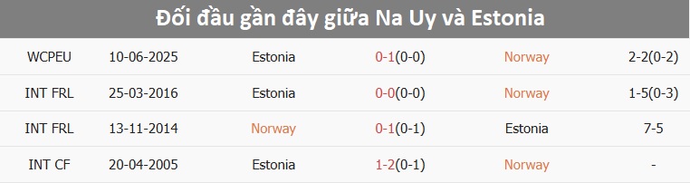Tỷ lệ trận đấu: Na Uy thắng 5/6 trận gần đây ở vòng loại World Cup theo tỷ số châu Á. Phía bên kia, Estonia thua 4/6 trận mới nhất.
