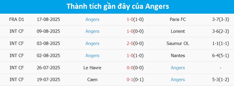 Tổng bàn thắng cả trận: 3/4 cuộc đối đầu mới nhất giữa hai đội dưới mốc tổng bàn thắng. Điều tương tự cũng xảy ra ở cả 7 trận gần đây của Angers.