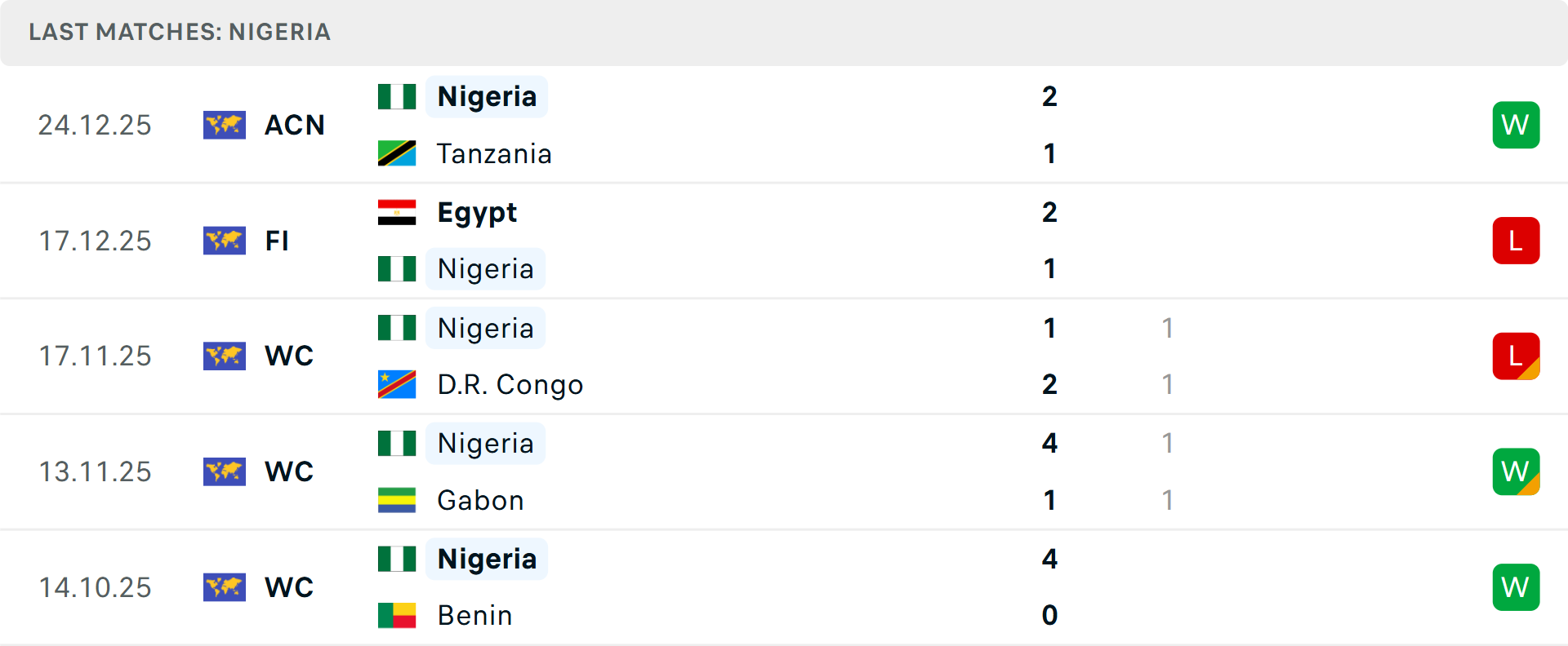Tỷ lệ trận đấu: Nigeria thua 3/4 trận vừa qua theo tỷ số châu Á, chỉ thắng 2/10 trận gần đây. Phía bên kia, Tunisia toàn thắng 2 trận mới nhất.