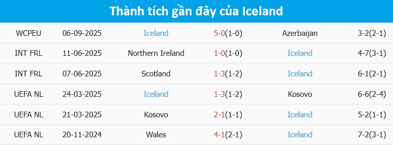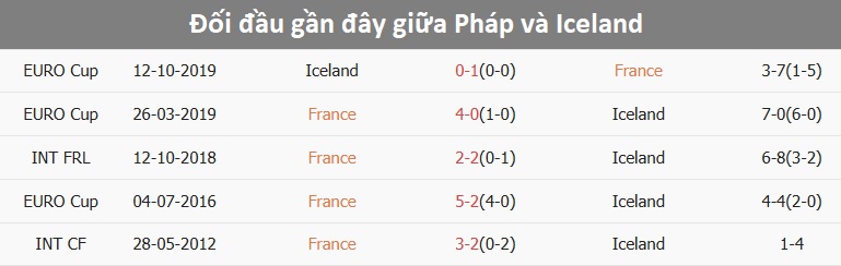 Tỷ lệ trận đấu: Pháp thắng 7/10 trận gần đây theo tỷ số châu Á, gồm 2 trận mới nhất. Về phần mình, Iceland thua 4/6 trận mới nhất.