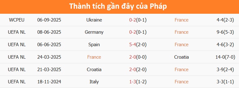 Tổng bàn thắng cả trận: 4/5 trận gần đây của Pháp dưới mốc tổng bàn thắng, giữ sạch lưới cả 2 trận mới nhất.