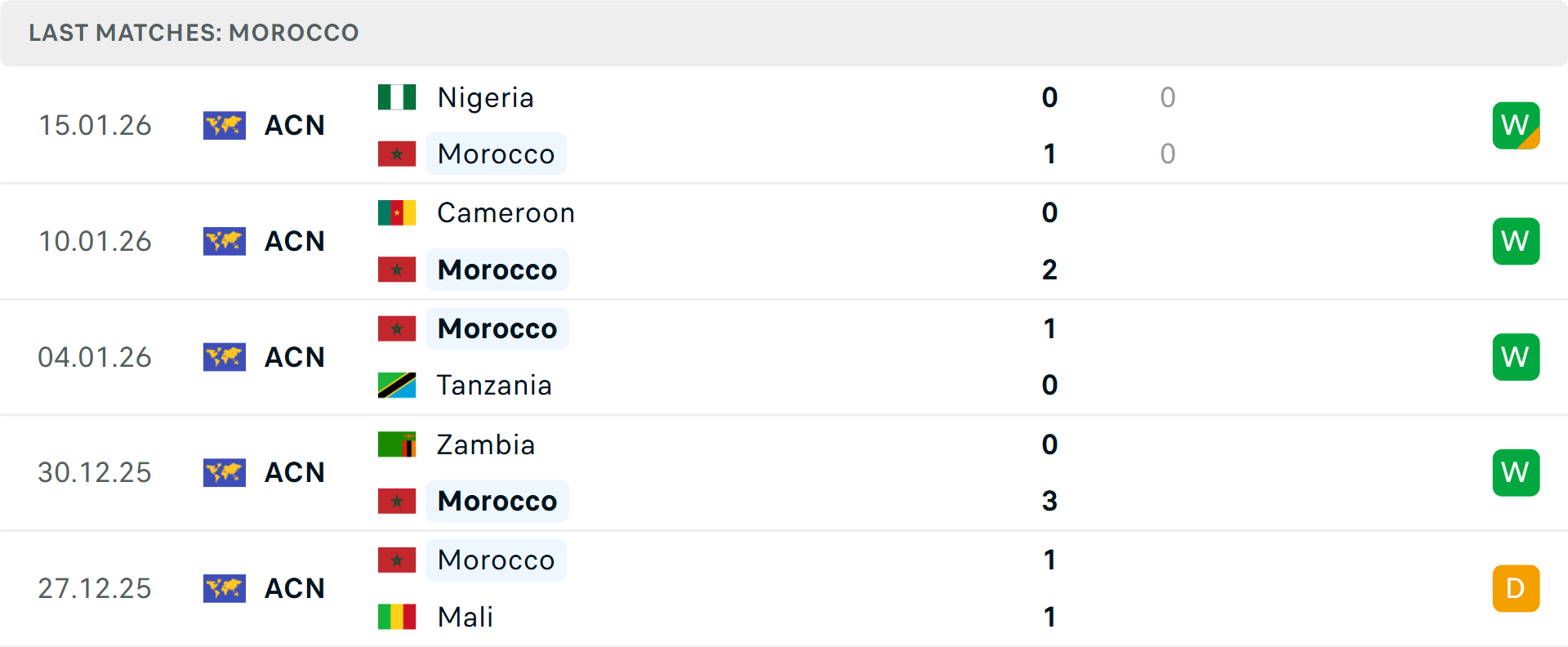 Tỷ lệ trận đấu: Senegal trải qua 4 trận thắng liên tiếp theo tỷ số châu Á. Phía bên kia, Ma rốc thua 3/5 trận gần đây.