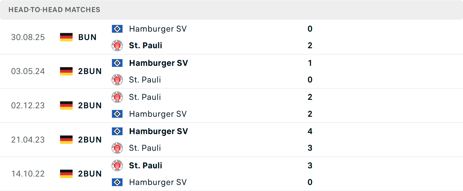 Tổng bàn thắng cả trận: 5/7 cuộc đối đầu trước đó giữa hai đội đều vượt mốc tổng bàn thắng, tương tự là 2 trận mới nhất của St. Pauli và 3/5 trận của Hamburg.