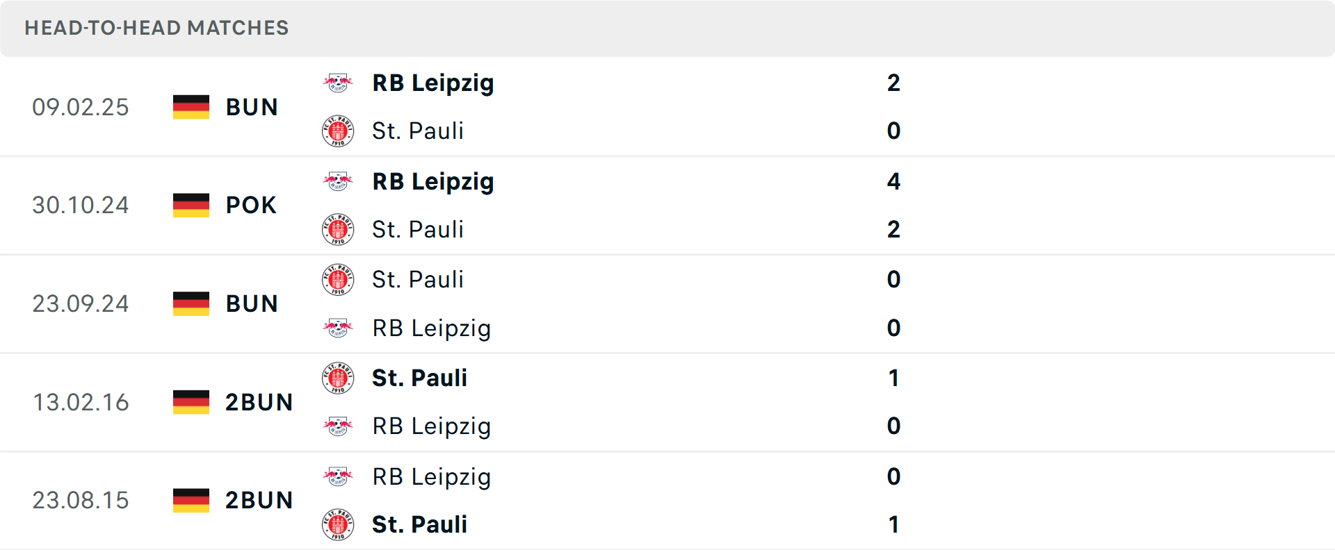 St. Pauli bước vào vòng 16 Bundesliga với phong độ khởi sắc khi bất bại 4 trận gần nhất trên mọi đấu trường. Dù sở hữu hàng công khiêm tốn nhất giải đấu (chỉ tạo ra 12,2 xG và 156 cú sút), nhưng đội quân của Alexander Blessin đã ghi được 4 bàn trong 4 trận gần đây, bằng tổng thành tích 9 trận trước đó. Điểm tựa sân nhà Millerntor vừa được củng cố sau trận thắng Heidenheim, giúp họ tự tin đối đầu với "ông lớn" đến từ Leipzig.
