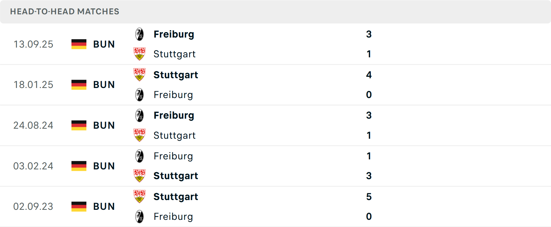 Tổng bàn thắng cả trận: Cả 6 cuộc đối đầu trước đó giữa hai đội đều vượt mốc tổng bàn thắng, tương tự là 6/10 trận gần đây của Stuttgart và 4/5 trận mới nhất ở Bundesliga của Freiburg.