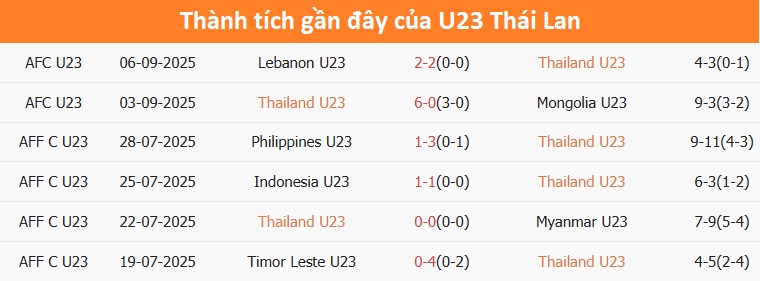 Tỷ lệ trận đấu: U23 Thái Lan thắng 3/4 trận vừa qua theo tỷ số châu Á. Về phần mình, U23 Malaysia thắng 2 và thua 5 trong 7 trận gần đây.
