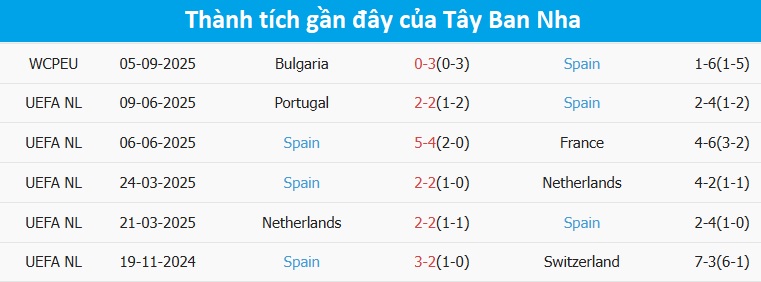 Tổng bàn thắng cả trận: 5/6 trận gần đây của Thổ Nhĩ Kỳ vượt mốc tổng bàn thắng. Điều tương tự cũng xảy ra ở 8/10 trận trước đó của Tây Ban Nha.