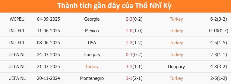 Về phần mình, Thổ Nhĩ Kỳ vừa trải qua 90 phút khó nhọc trước chủ nhà Georgia để cuối cùng giành chiến thắng sít sao 3-2. Nhìn chung, từ thành công ở Nations League cho đến trận mở màn vòng loại, Calhanoglu và các đồng đội đang duy trì phong độ cao, với hiệu quả lớn về khía cạnh tấn công. Điều này tạo nên sự mong đợi về một màn đôi công hấp dẫn với Tây Ban Nha, nhưng tất nhiên La Roja có chất lượng vượt trội để tạo khác biệt.