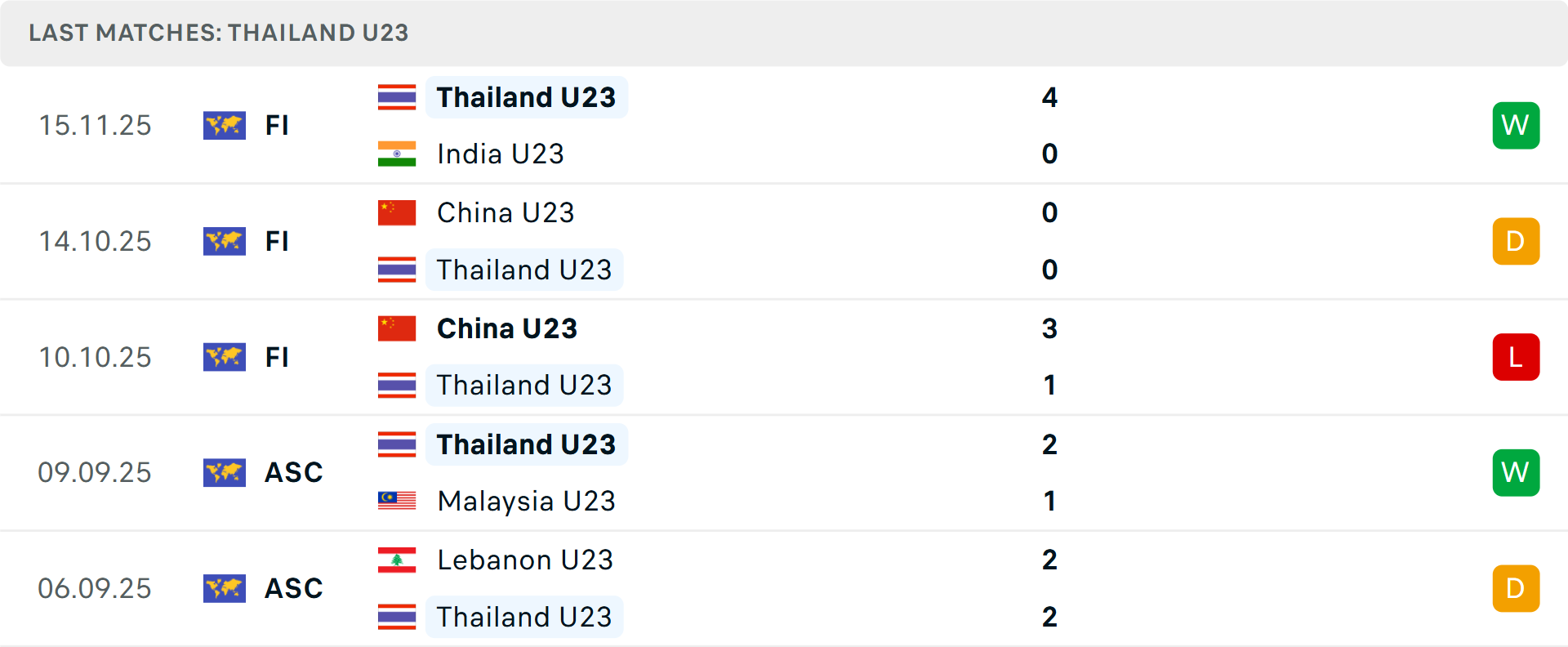 Tỷ lệ trận đấu: U23 Thái Lan thắng 5/7 trận gần đây theo tỷ số châu Á, gồm 2 trận mới nhất.