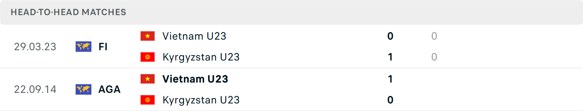 Tỷ lệ trận đấu: U23 Kyrgyzstan toàn thắng 7 trận gần đây theo tỷ số châu Á. Phía bên kia, U23 Việt Nam cũng thắng 2 trận mới nhất.
