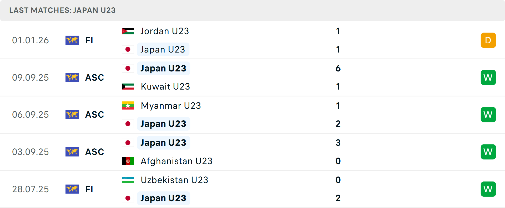 U23 Nhật Bản bước vào giải đấu với tư thế ứng cử viên vô địch cùng phong độ ấn tượng khi thắng 6/7 trận gần nhất. Đội bóng xứ Phù tang nổi tiếng với lối chơi kiểm soát bóng áp đảo và tính kỷ luật chiến thuật cao. Điểm nhấn sẽ nằm ở hàng tiền vệ sáng tạo, nơi các cầu thủ trẻ Nhật Bản sẵn sàng trừng phạt mọi sai lầm của đối thủ.