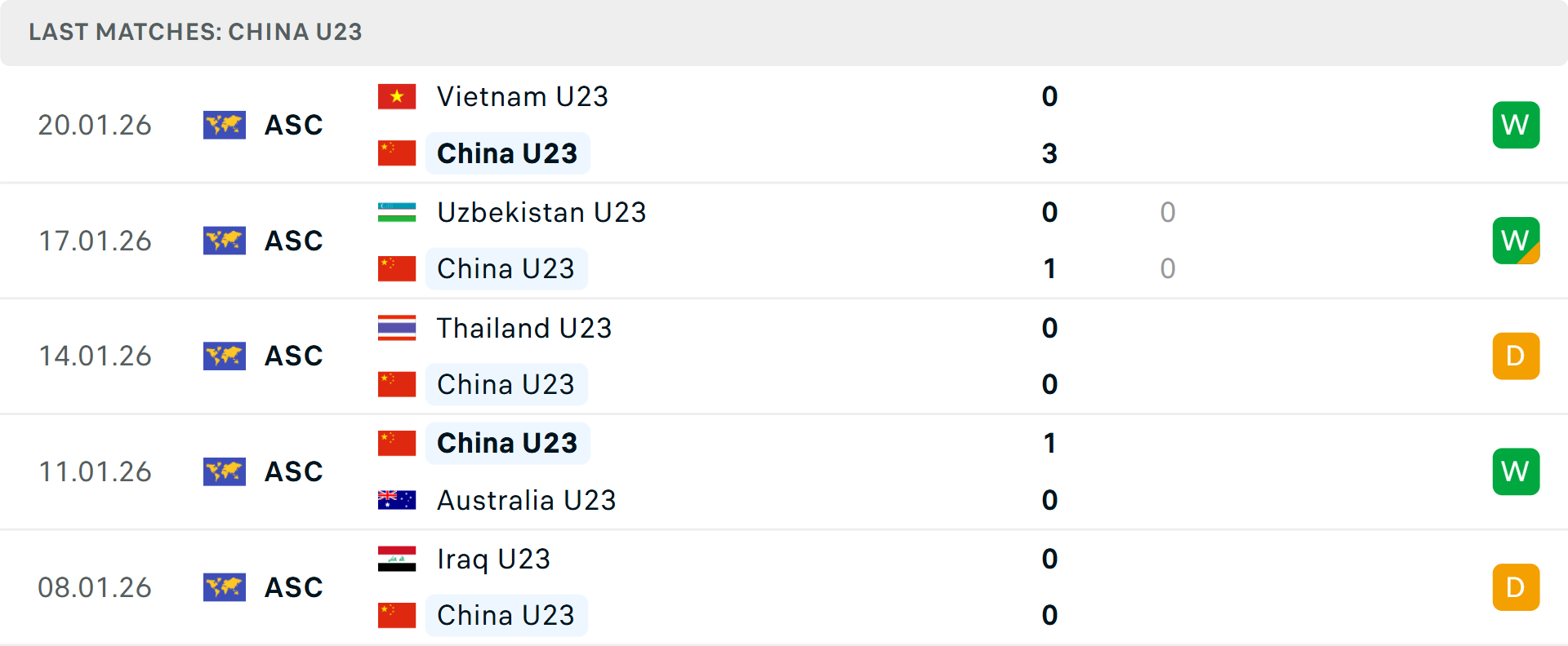 Tỷ lệ trận đấu: U23 Trung Quốc thắng 4/5 trận tại giải đấu theo tỷ số châu Á. Phía bên kia, U23 Nhật Bản cũng thắng 4/5 trận gần đây.