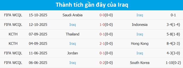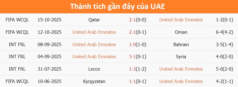Tỷ lệ trận đấu: UAE toàn thua Iraq cả 4 cuộc đối đầu trước đó theo tỷ số châu Á. UAE chỉ thắng 1/6 trận gần đây ở vòng loại World Cup. Phía bên kia, Iraq thắng cả 3 trận mới nhất.