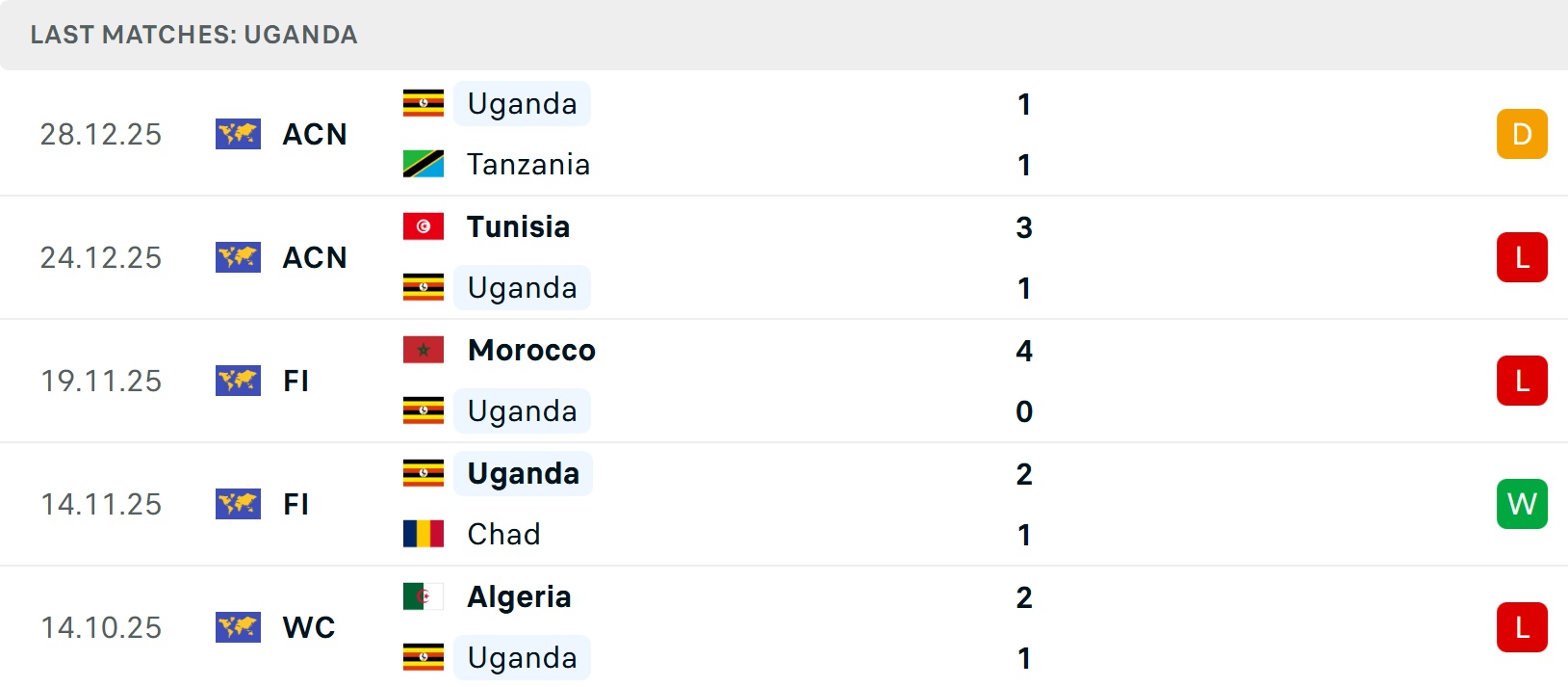 Ngược lại, Uganda đang ở thế dựa chân tường sau trận hòa 1-1 đầy tiếc nuối trước Tanzania. Dù lịch sử đối đầu ủng hộ "Những chú sếu" (thắng 4/8 lần gặp nhau), nhưng phong độ hiện tại của họ khá nhạt nhòa với chỉ 1 chiến thắng trong 10 trận gần nhất tại AFCON. Nigeria muốn khẳng định tư thế ứng viên vô địch, trong khi Uganda buộc phải thắng để nuôi hy vọng đi tiếp. Với đẳng cấp vượt trội, Nigeria nhiều khả năng sẽ kiểm soát trận đấu nhưng sự lơi lỏng của họ có thể giúp Uganda có bàn danh dự.