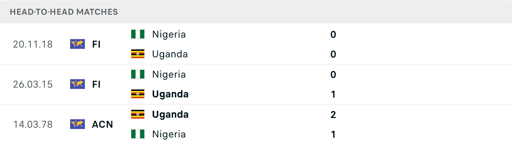 Tỷ lệ trận đấu: Uganda toàn thua 3 trận gần đây theo tỷ số châu Á. Về phần mình, Nigeria thắng 1 và hòa 1 trong 2 trận vừa qua.