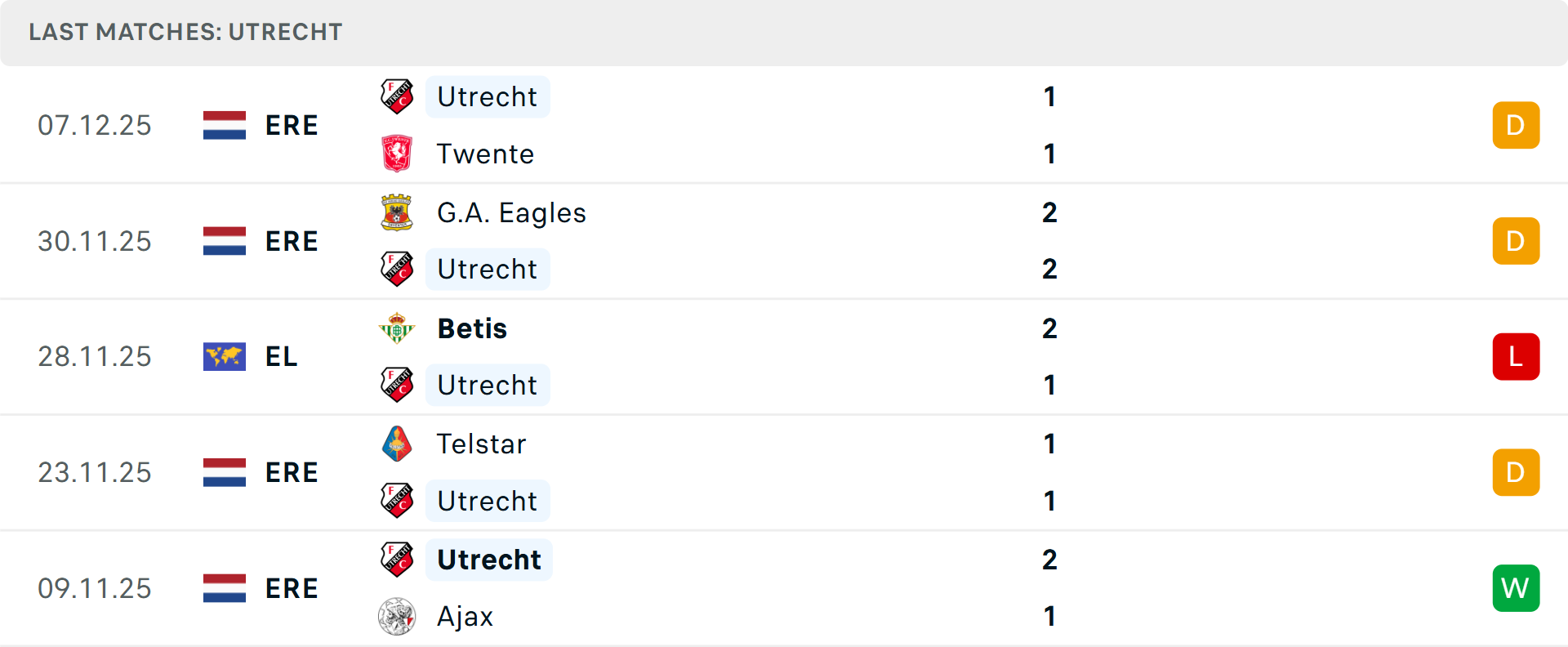 Về phía Utrecht, đội bóng Hà Lan đang có chuỗi trận không thắng tại Europa League mùa này (1 hòa, 4 thua) và đang giữ kỷ lục 16 trận liên tiếp không thắng ở đấu trường châu Âu. Dù bất bại 6 trận sân nhà gần nhất (3 thắng, 3 hòa), Utrecht vẫn bị đánh giá thấp hơn đối thủ Anh.
