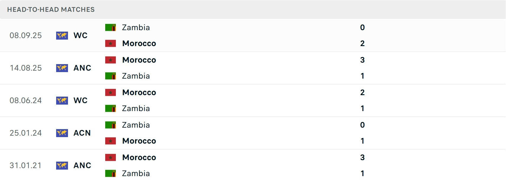 Tỷ lệ trận đấu: Zambia thua Marốc 4/5 cuộc đối đầu trước đó theo tỷ số châu Á. Zambia cũng thua 7/9 trận gần đây. Về phần mình, Marốc thắng 2 và thua 2 trong 4 trận vừa qua.