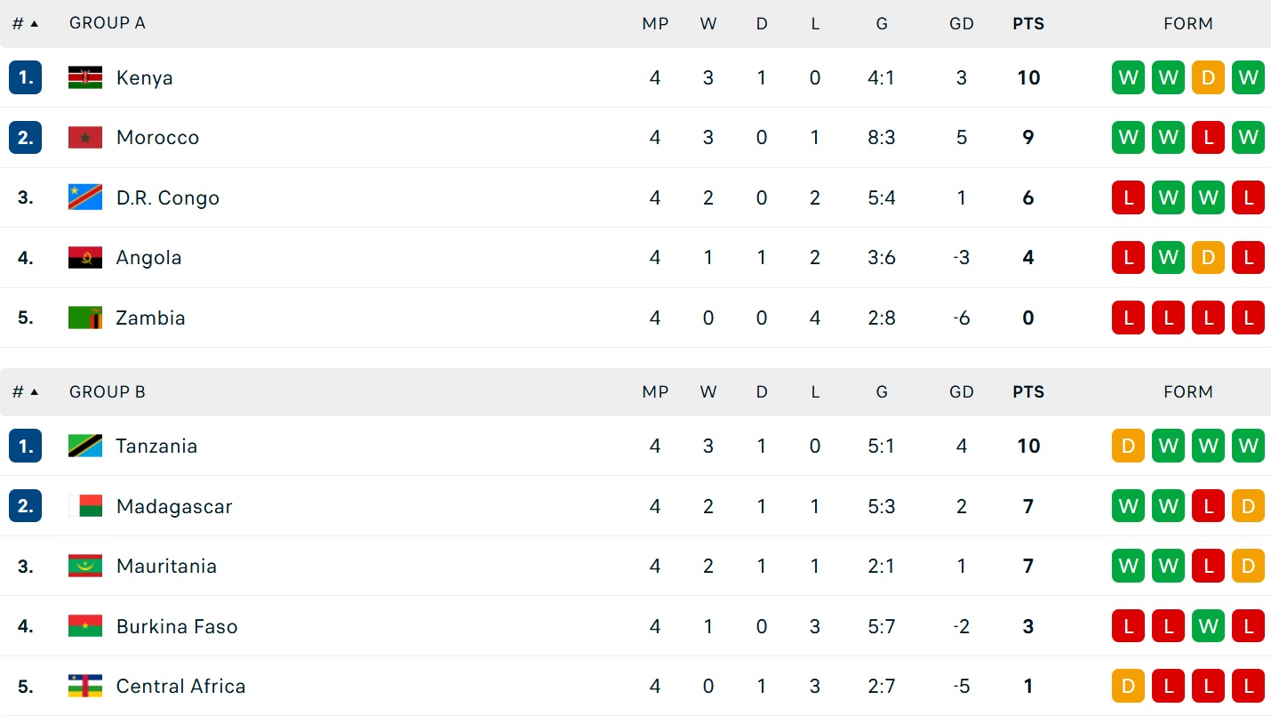 21h00: Kenya 1-0 Zambia (Ogam 75)