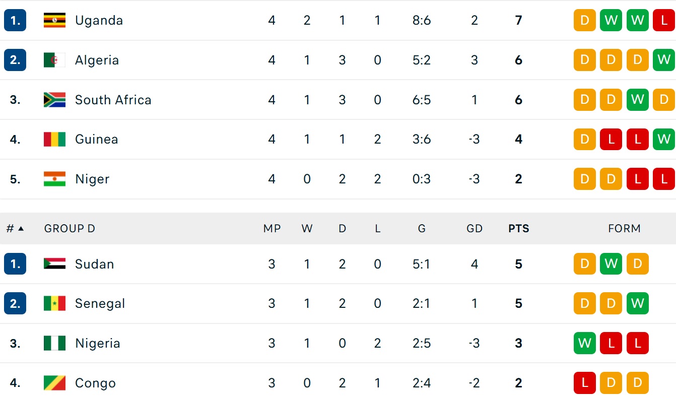 Sudan (Ngenge 25' (OG); Khedr 44' (P); Raouf 55', 62') 4-0 Nigeria