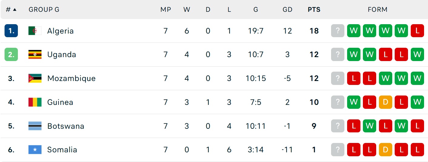 Ở bảng G, cơ hội của Algeria được cải thiện đáng kể sau khi đội đứng thứ hai Mozambique bị đè bẹp 4-0 tại Uganda, trong khi ở bảng H, thất bại của Namibia trước Malawi có nghĩa là Tunisia có thể giành được suất nếu họ đánh bại Guinea Xích Đạo trên sân khách vào thứ Hai.