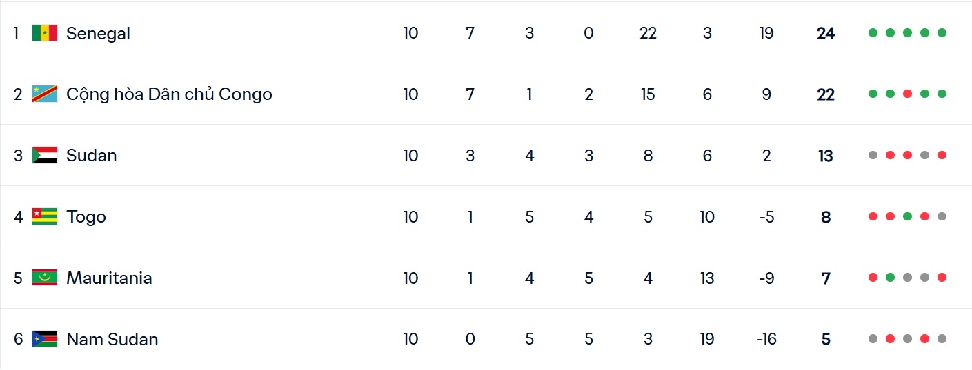 Ghi bàn: Mane (45+1, 49), Ndiaye (64), Diallo (85)