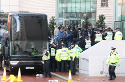 Khi trận MU gặp Liverpool chính thức bị hoãn, các cầu thủ chủ nhà phải nhờ đến cảnh sát hộ tống ra xe để rời khỏi khách sạn.