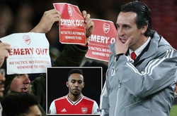 Người hâm mộ Arsenal giơ cao những biển hiệu phản đối HLV Unau Emery khi chứng kiến đội bóng thất bại trên sân nhà trước Eintracht Frankfurt ở Europa League.