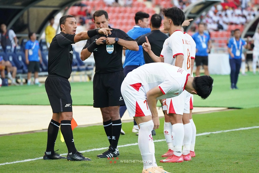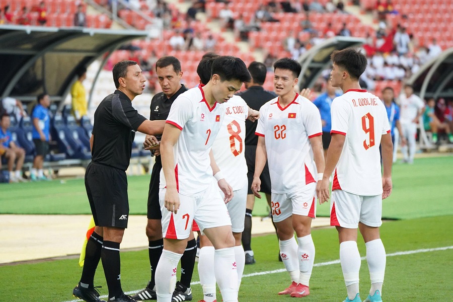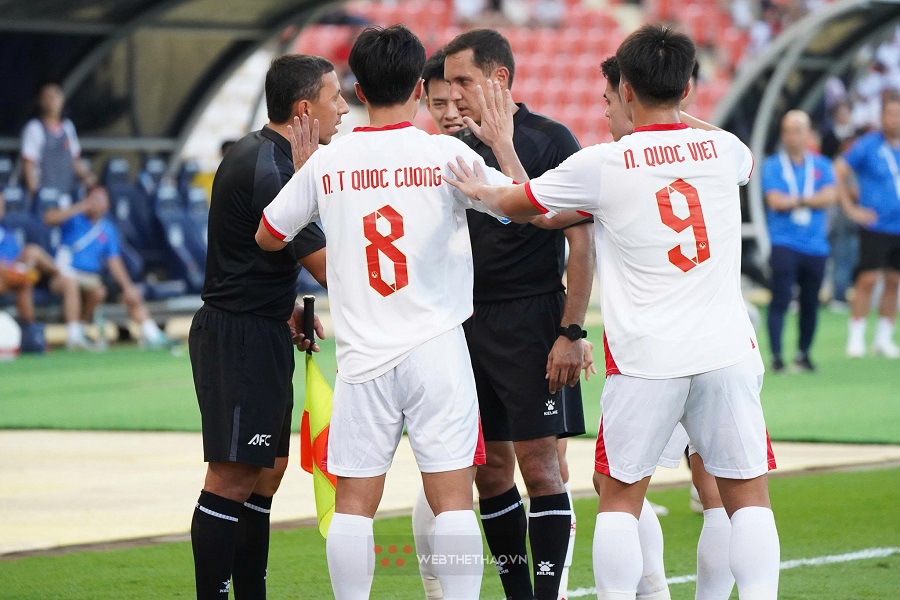 Một số hình ảnh về trọng tài thay đổi quyết định, công nhận bàn thắng cho U22 Việt Nam: