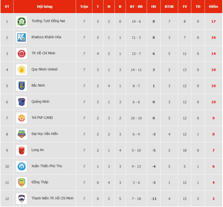 Giải hạng Nhất năm nay chỉ còn 12 cái tên. Đó là Bắc Ninh, Đại Học Văn Hiến, Đồng Tháp, Khatoco Khánh Hòa, Long An, TP.Hồ Chí Minh, Thanh Niên TP.Hồ Chí Minh, Trẻ PVF-CAND, Trường Tươi Đồng Nai, Quảng Ninh, Quy Nhơn United, Xuân Thiện Phú Thọ.