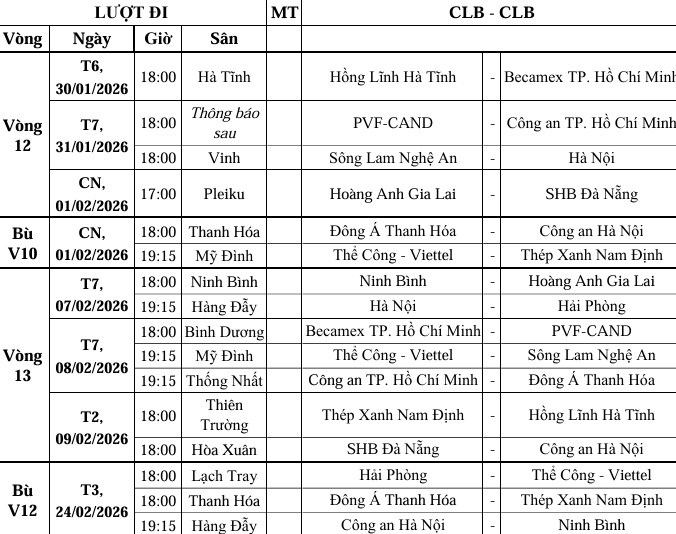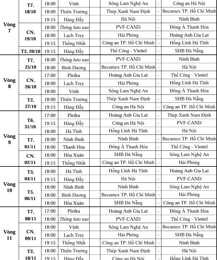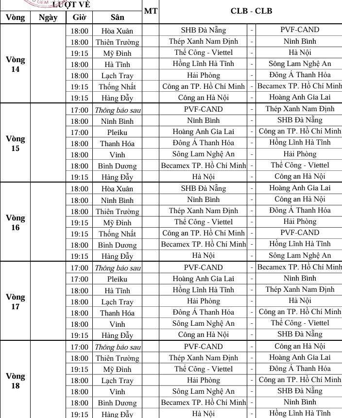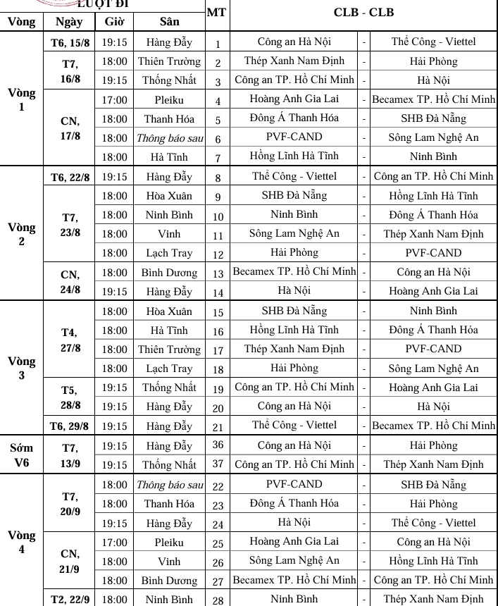 LỊCH THI ĐẤU V LEAGUE 2025/26 MỚI NHẤT